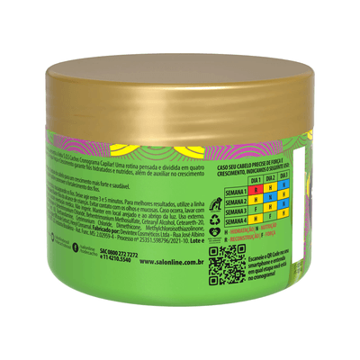 Cronograma capilar para cabelos Crespos e Cacheados SOS Hidratação Salon Line de R$ 67,44 por R$ 50,58 ou 5 x de R$ 10,11 25% off01 Salon Line SOS Cachos Cronograma Capilar Máscara de Tratamento Intenso Força e Crescimento 300g O Kit Cronograma Capilar garante ultrahidratação, ultranutrição, melhora o aspecto do fio, controle de frizz, reconstrução intensa, reposição de massa capilar, combate às pontas duplas, brilho, maciez para os fios e auxilia no crescimento saudável dos fiosA Máscara Salon Line SOS Cachos Cronograma Capilar Força E Crescimento garante fios hidratados e nutridos, além de auxiliar no crescimento saudável dos cabelos É indicada para cabelos ondulados, cacheados e crespos que estão fracos e quebradiços Além disso, é enriquecido com extrato de bamboo e biotina que restaura a fibra capilar, melhorar a textura dos fios, ajudar
